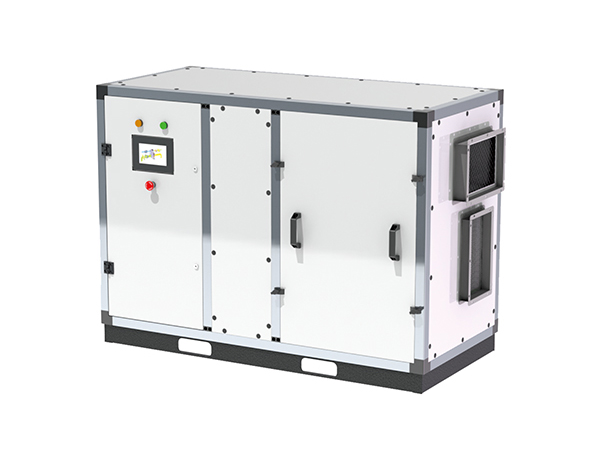 在再生過程中,再生空氣經過加熱後(120℃左右),進入轉輪再生區扇麵,在高溫狀態下,轉輪中的水分子被脫附,散失到再生 空氣中。再生空氣由於在脫附過程中損失了熱量,自身溫度降低,變成了含濕量很大的濕空氣 ,由再生風機排至室外。除濕和再生同時進行,待處理空氣不斷除濕,轉輪不斷再生,對空氣進行連續除濕。